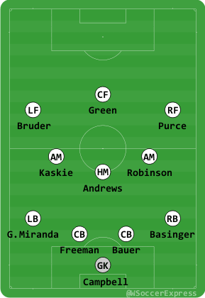 Starting Line-Up and Formation: The only real surprise in the starting eleven was that Morgan Stanton did not start as the midfield included both Lauren Kaskie and Sarah Robinson as attacking midfielders. The starting eleven:
