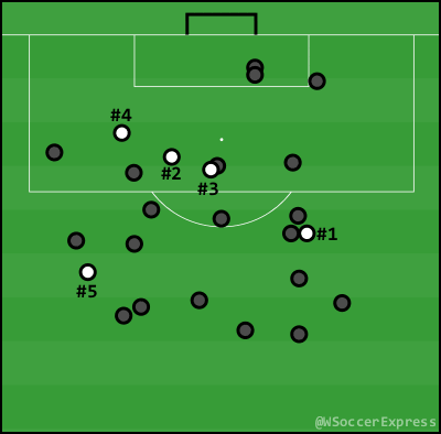 Although Stanton appeared to have technically started on the right side, she played mostly on the left in the opening minutes, so the placement of Robinson and Stanton is up for debate.