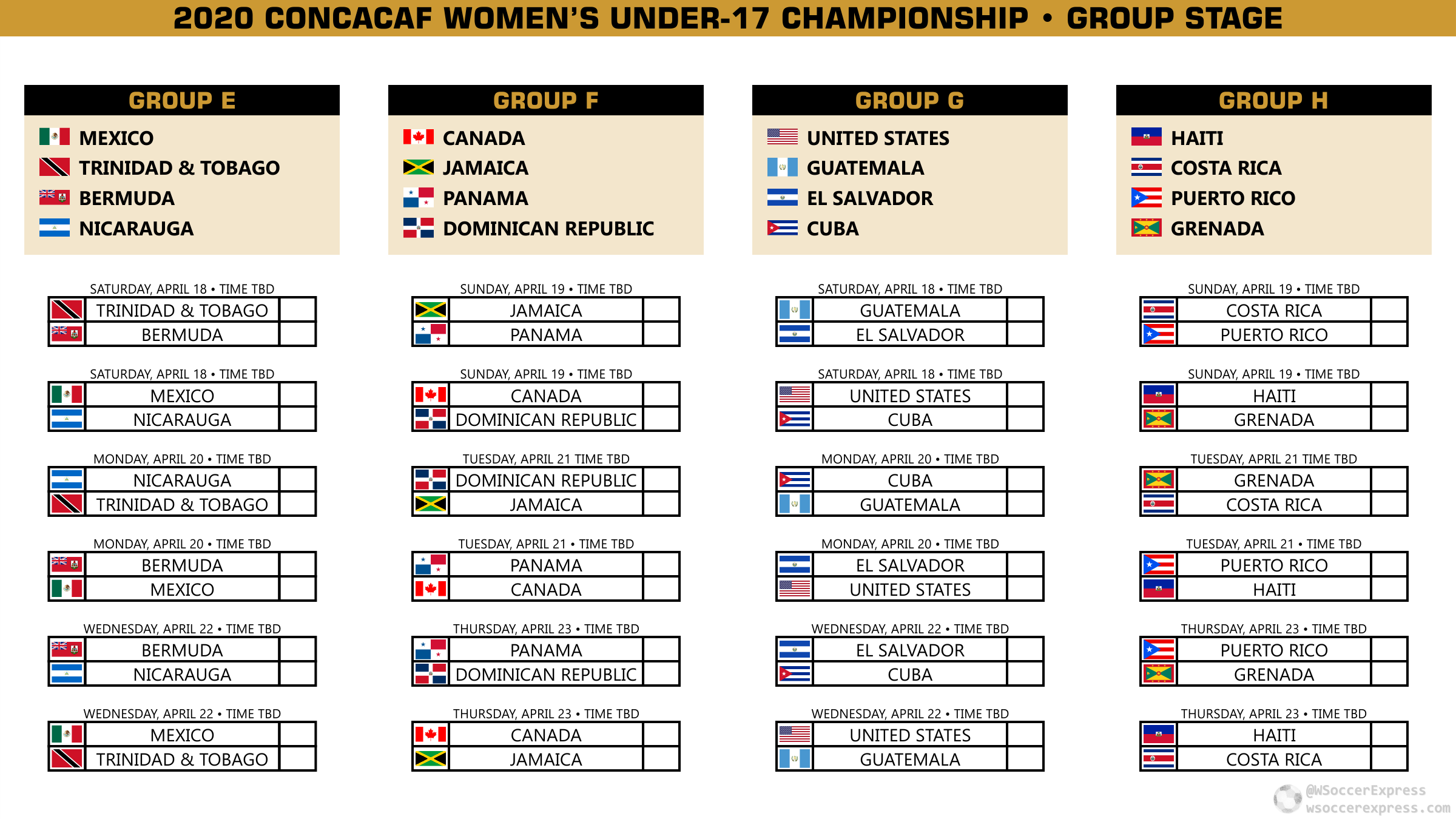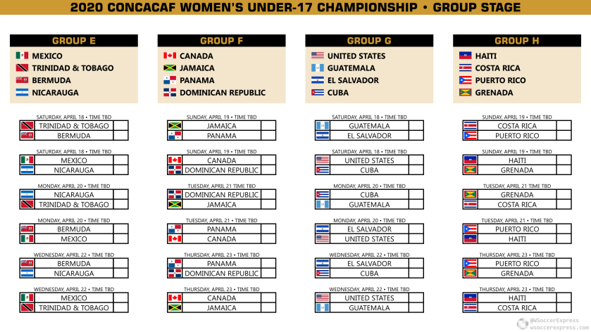 On Friday, January 31st, CONCACAF released a preliminary schedule for this year’s edition of the CONCACAF Women’s Under-17 Championship, which will be hosted by Mexico from April 18th to May 3rd (CONCACAF.com).* Up for grabs at the tournament are three tickets to November’s FIFA Under-17 Women’s World Cup in India.
