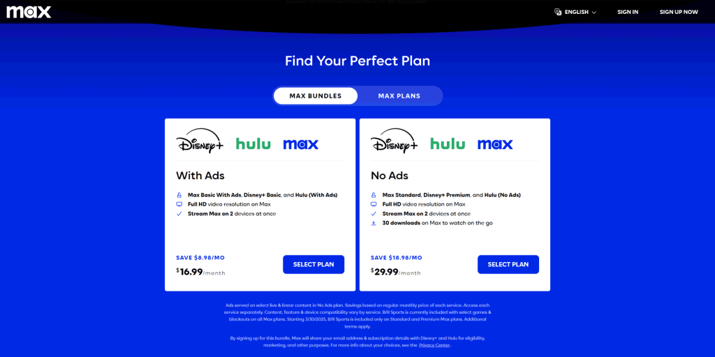 Alternatively, Max can be bundled with Disney+ and Hulu: