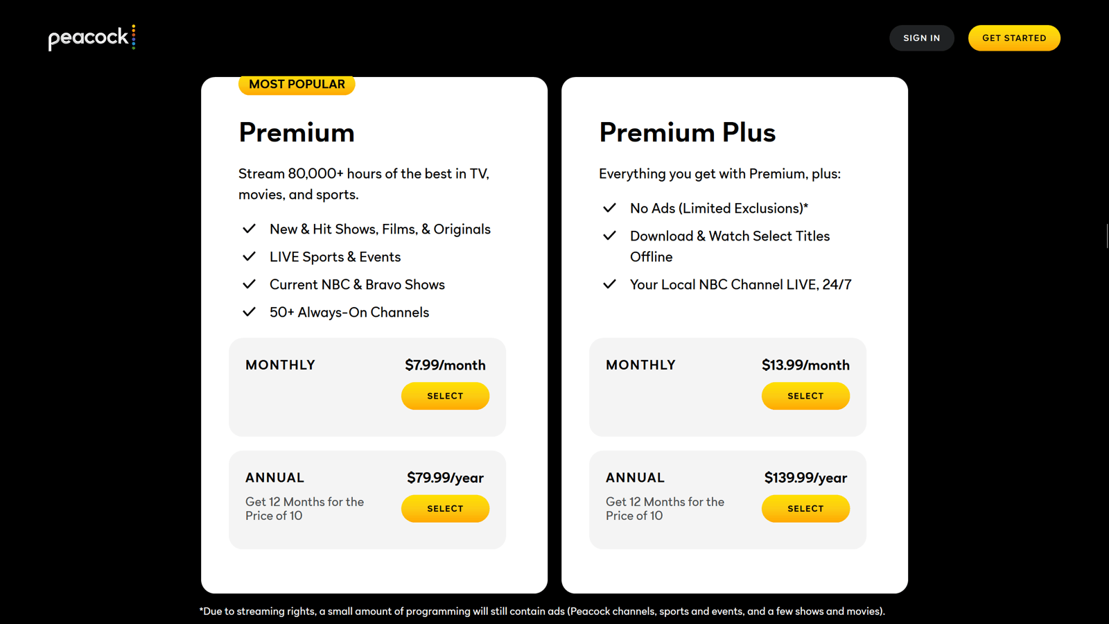 5. I currently do not subscribe to either Max or Peacock. As with the previous two examples, the lowest cost option would be a Peacock “Premium” subscription.