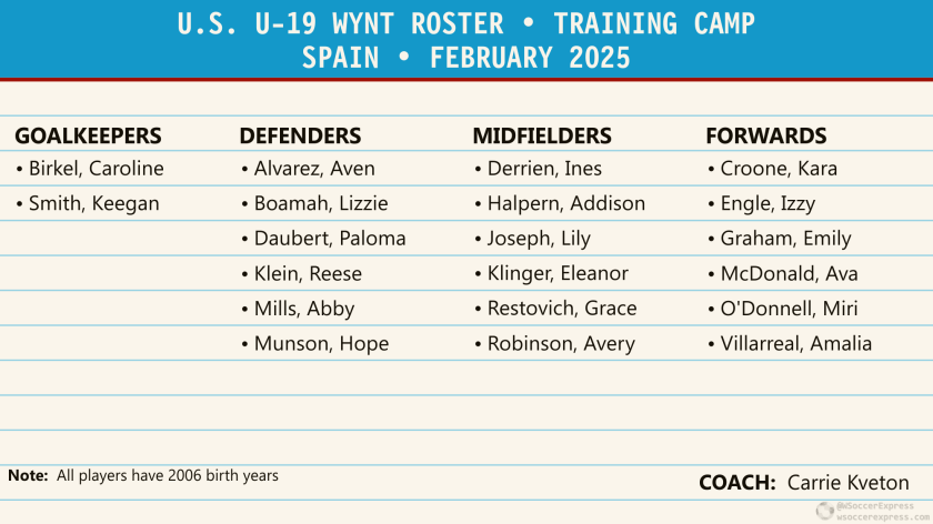 U.S. Soccer also announced that “full-time head coaching positions for the U.S. U-18 WNT, U.S. U-20 WNT and U.S. U-23 WNT [will] likely being filled in the coming weeks”. The other current youth head coach is Carrie Kveton, who is in charge of the Under-19 WYNT. The U-19s are preparing to qualify for the 2026 FIFA Under-20 Women’s World Cup.