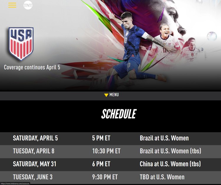partial screenshot of www.tntdrama.com/ussoccer on 1-Mar-2025
